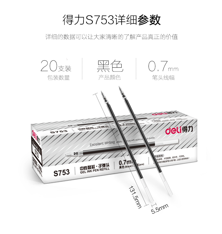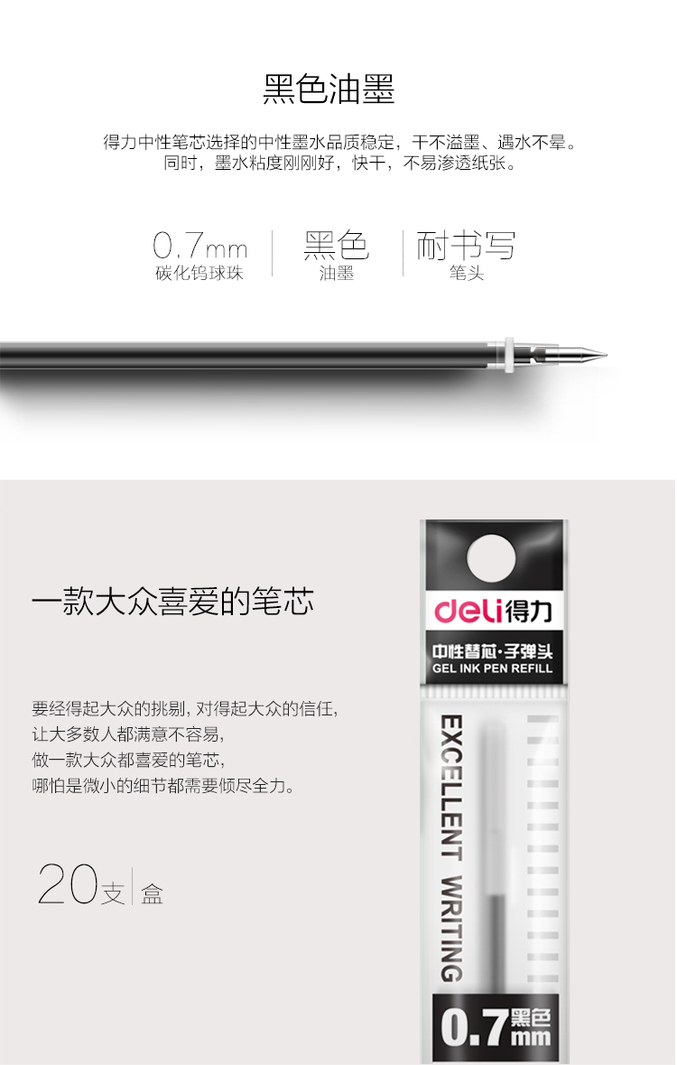 得力 6916 0.5mm 子彈頭黑色筆芯 單位:盒