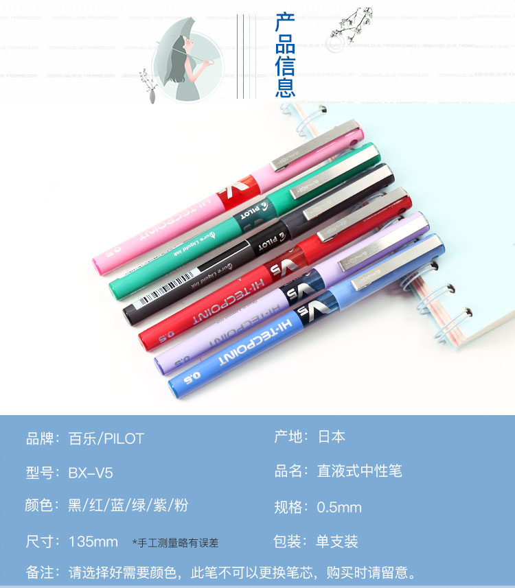 百樂(lè)簽字筆 BX-V5 直液式 0.5mm 黑色 單位:支