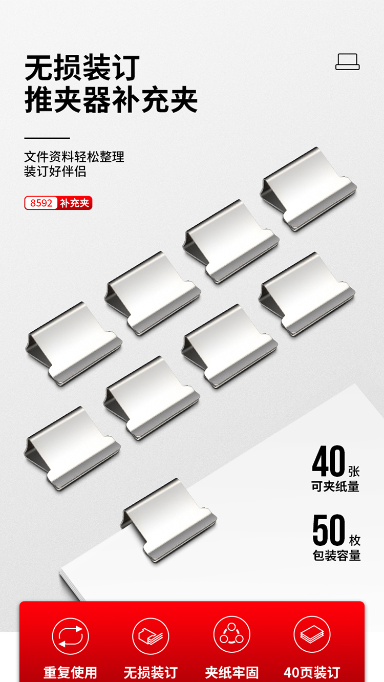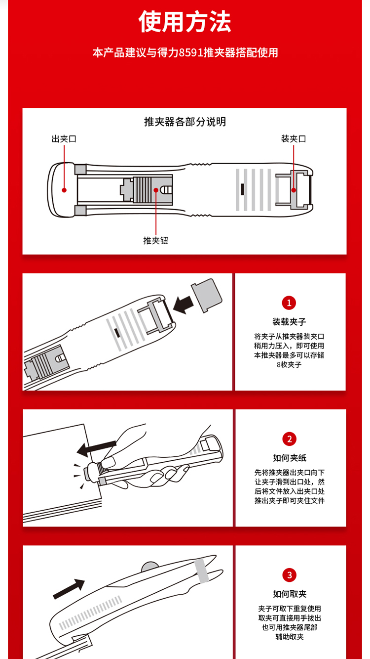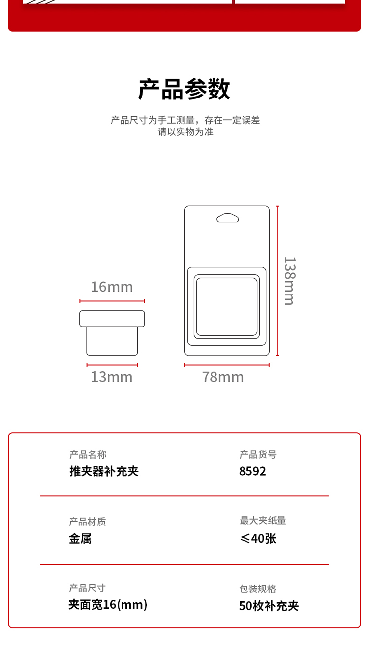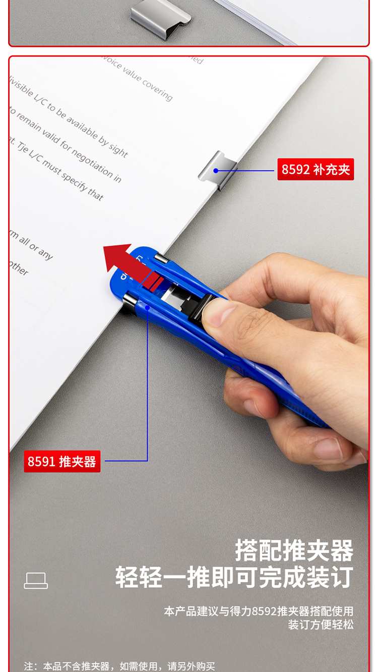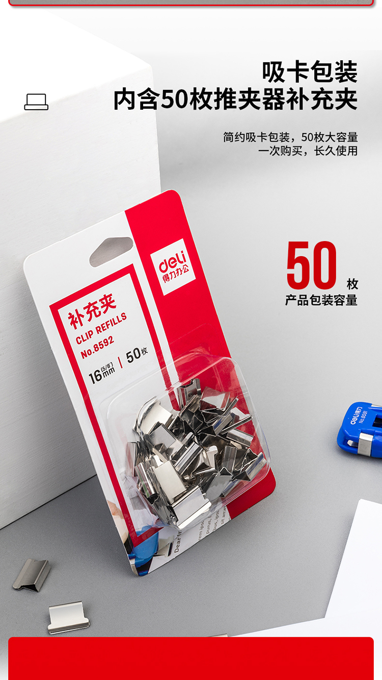 得力推夾器補充夾子 8592 50枚裝 單位:卡