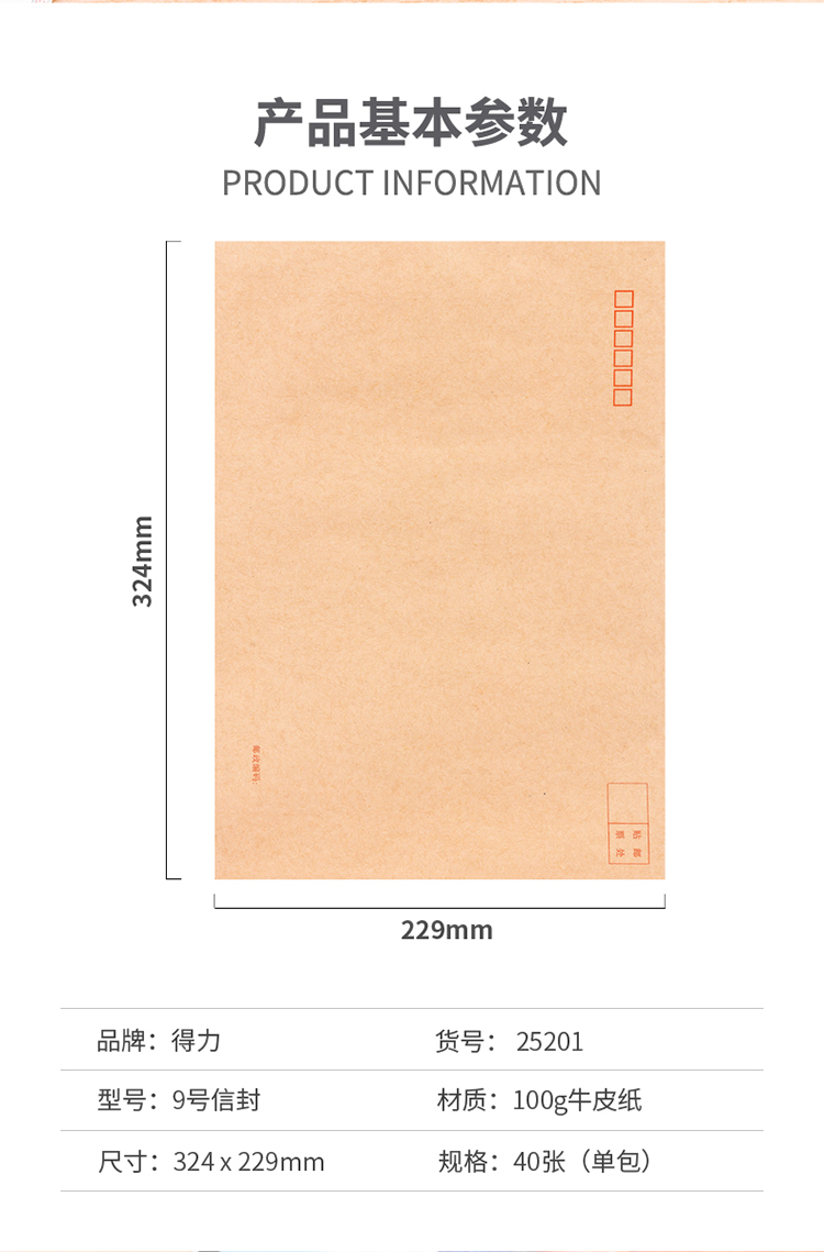 得力9號(hào)信封 25201 40張郵局標(biāo)準(zhǔn)信封 單位:包