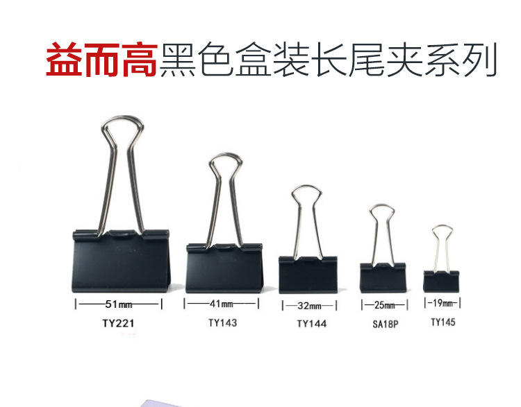 益而高長尾夾紙盒裝 金屬黑色 25mm 單位:盒