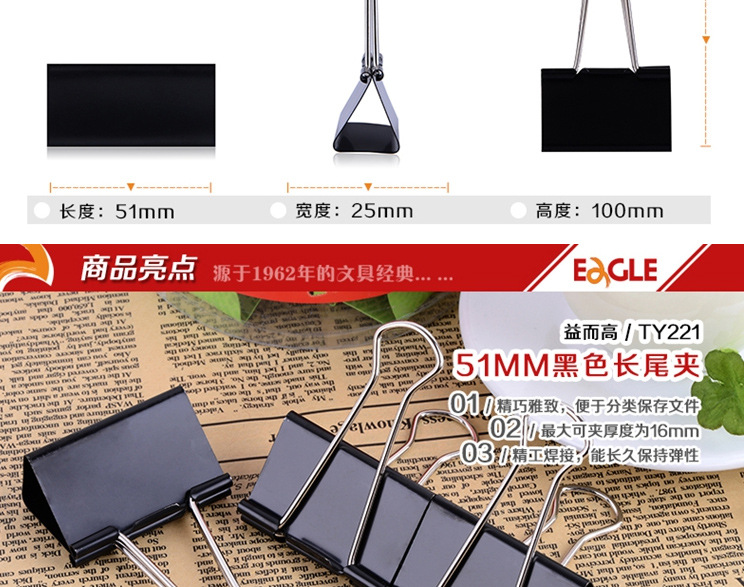 益而高長尾夾紙盒裝 金屬黑色 41mm 單位:盒