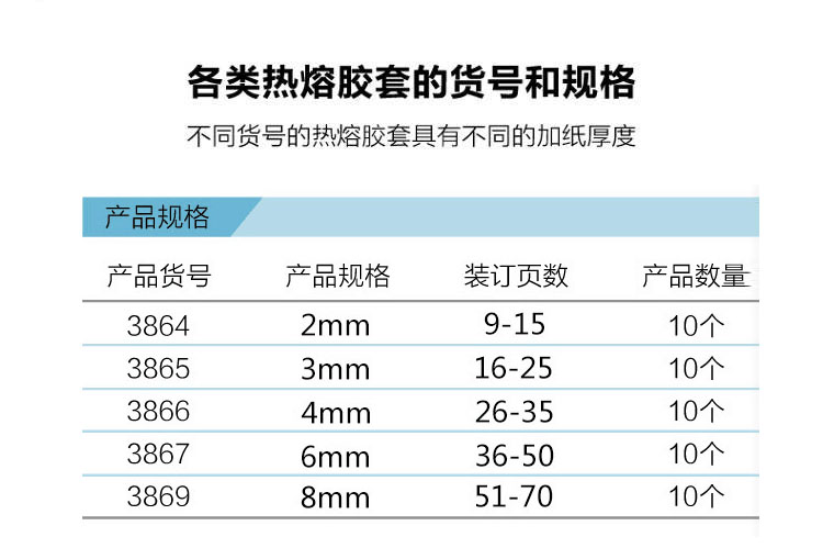 得力熱熔封套 3869 白色 8mm 單位:10個(gè)/包