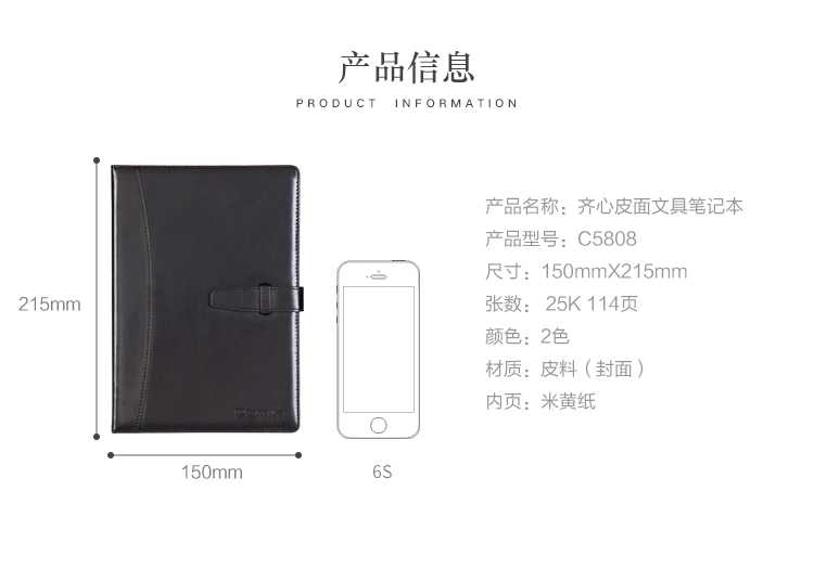 齊心筆記本 C5808 插扣式皮面 黑色 單位:本
