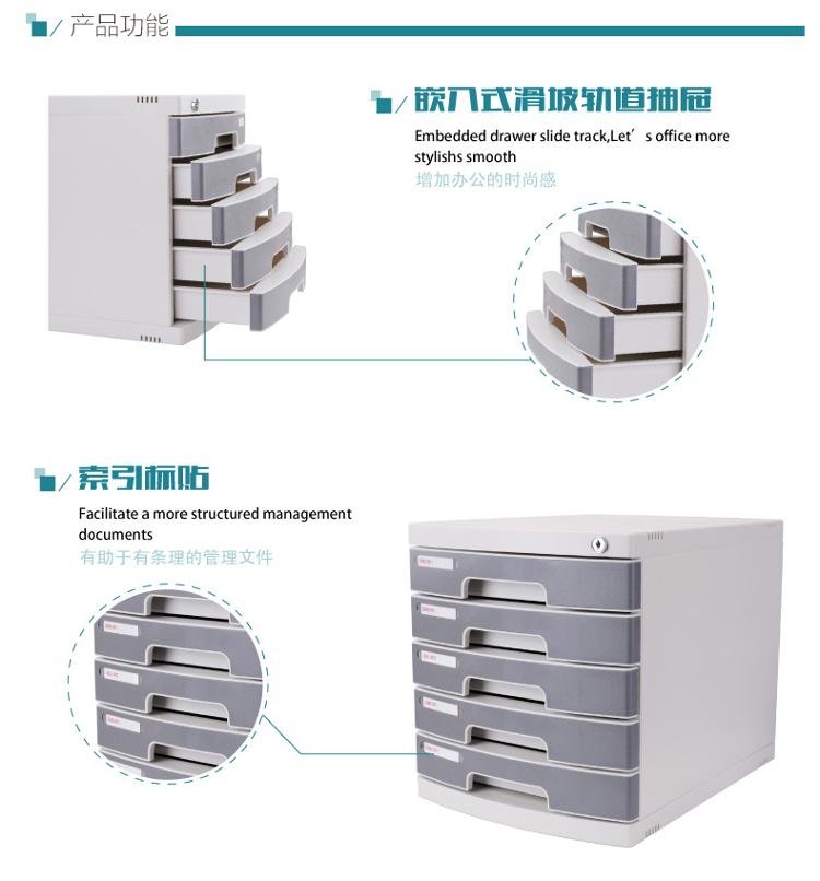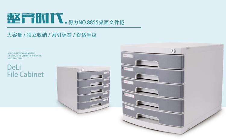 得力文件柜 8855 五層塑料文件柜(帶鎖)灰色 單位:個