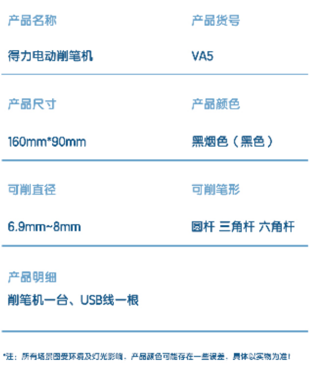 得力電動(dòng)削筆機(jī) VA5 黑白藍(lán) 單位:個(gè)