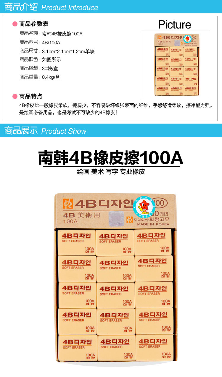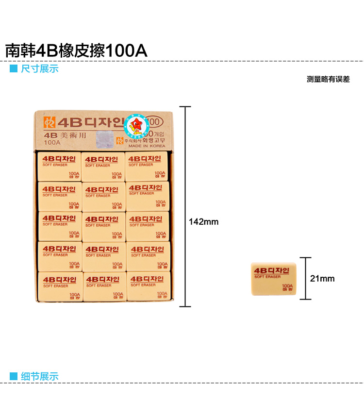 南韓橡皮擦 4B100A手感舒適 單位:塊