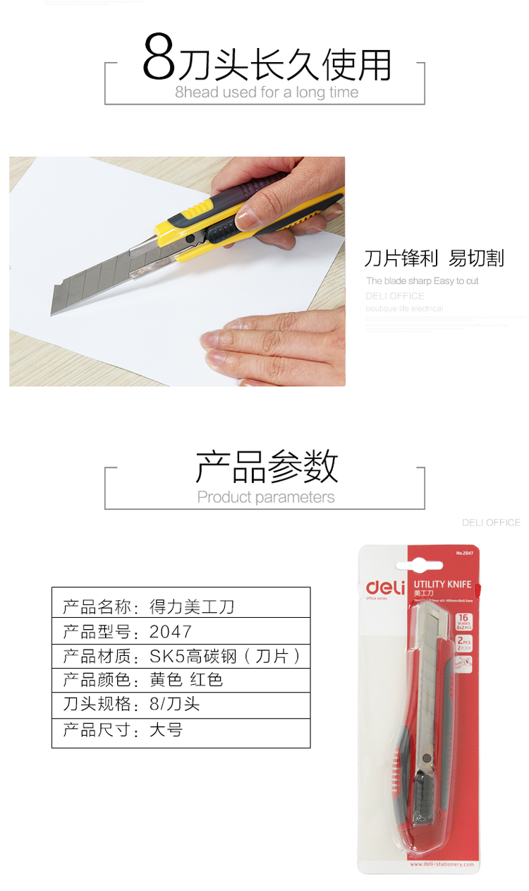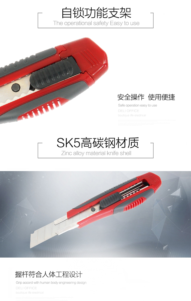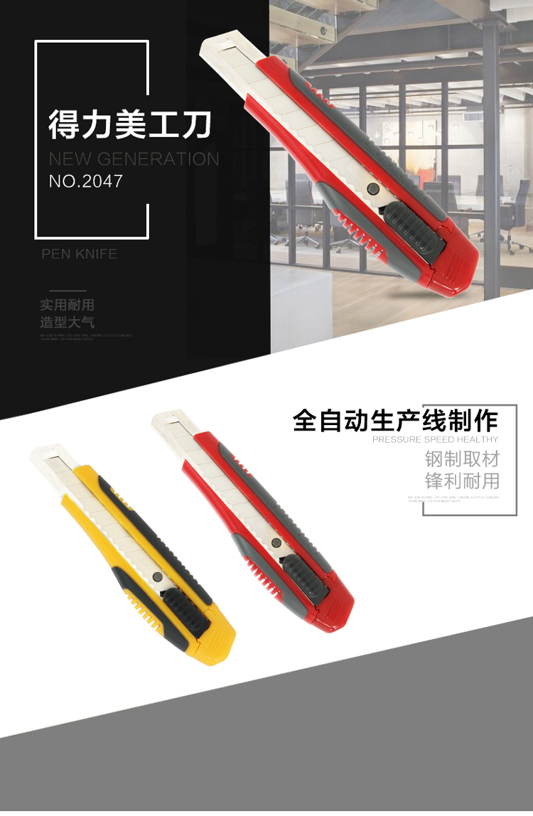 得力(deli)2047 大號軟膠護手帶金屬護套美工刀 顏色隨機