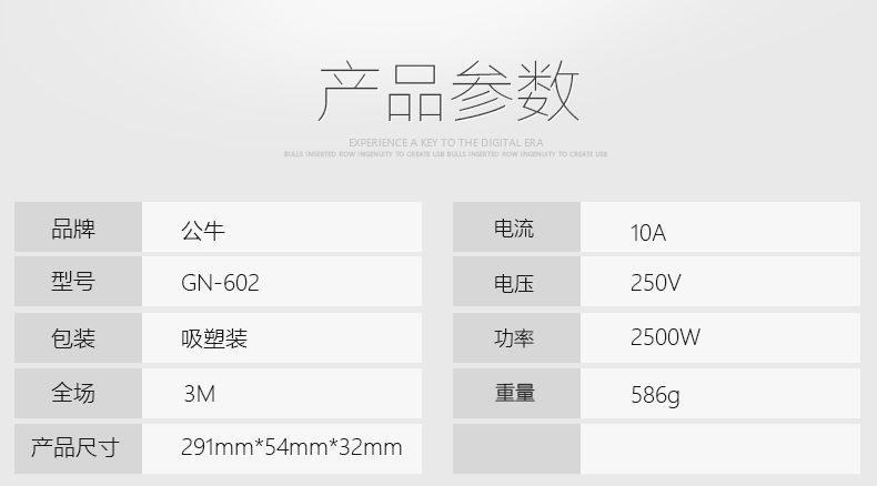 公牛插座 GN-602 3米一控五新國(guó)標(biāo)孔插線板 單位:個(gè)
