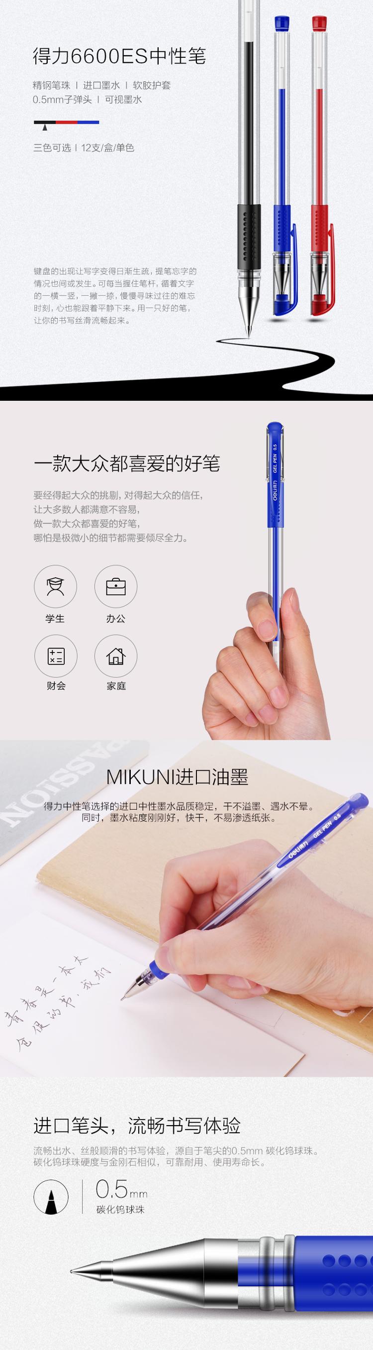 得力(deli)6600ES 0.5mm通用型中性筆/水筆/簽字筆 紅色 12支/盒