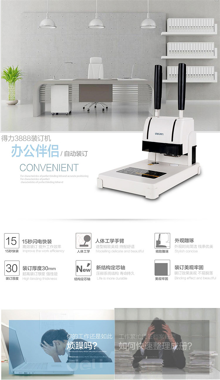 得力(deli) 裝訂機(jī)財務(wù)憑證 雙手柄小巧型(可裝訂30MM) 3888