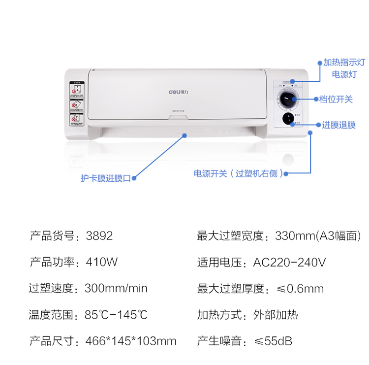 得力塑封機(jī) 3892 A3靜音塑封機(jī) 單位:臺