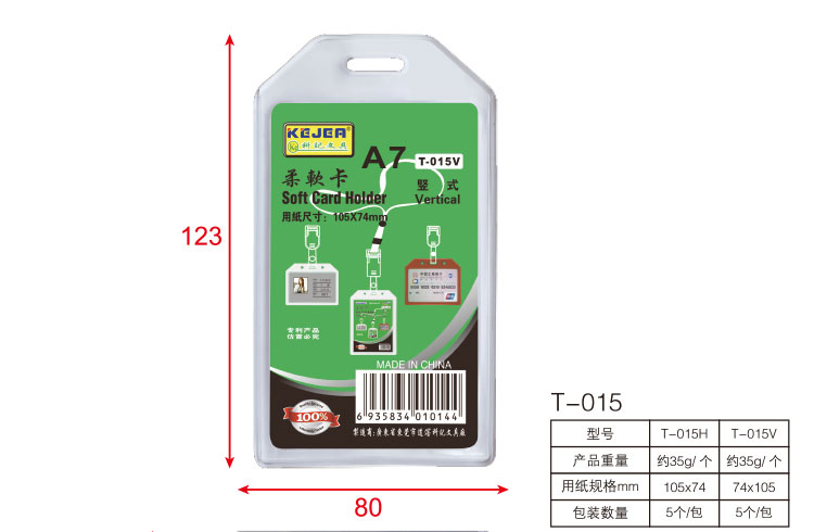 科記 厚款柔軟卡套T-015V 豎 不配繩 5個(gè)/包 單位:包