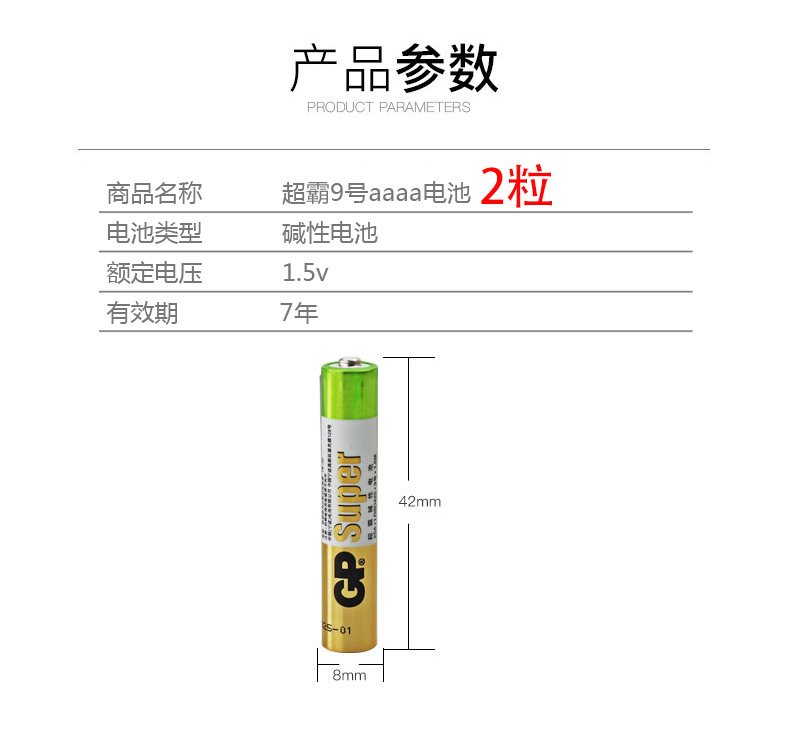 超霸電池 9號(hào)堿性電池2粒 單位:卡