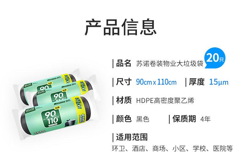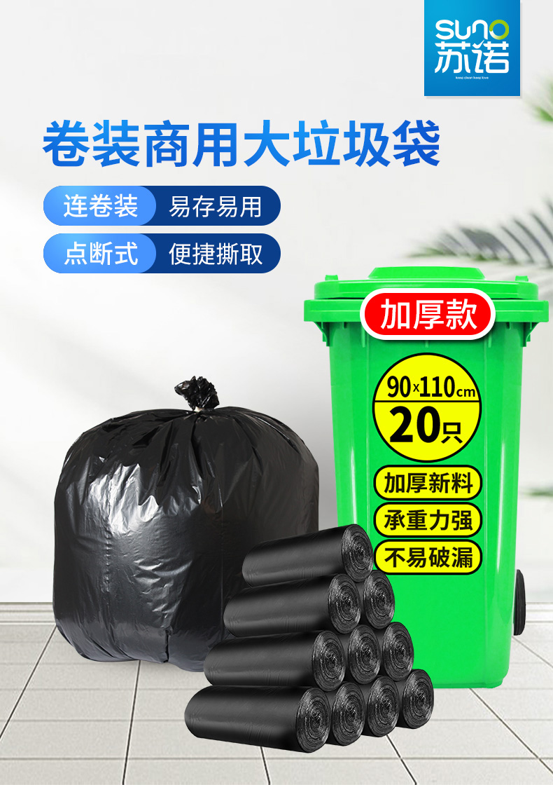 一順 90*110cm 垃圾袋大號平口加厚黑色家用廚房清潔袋桶用 垃圾分類 20只裝卷裝
