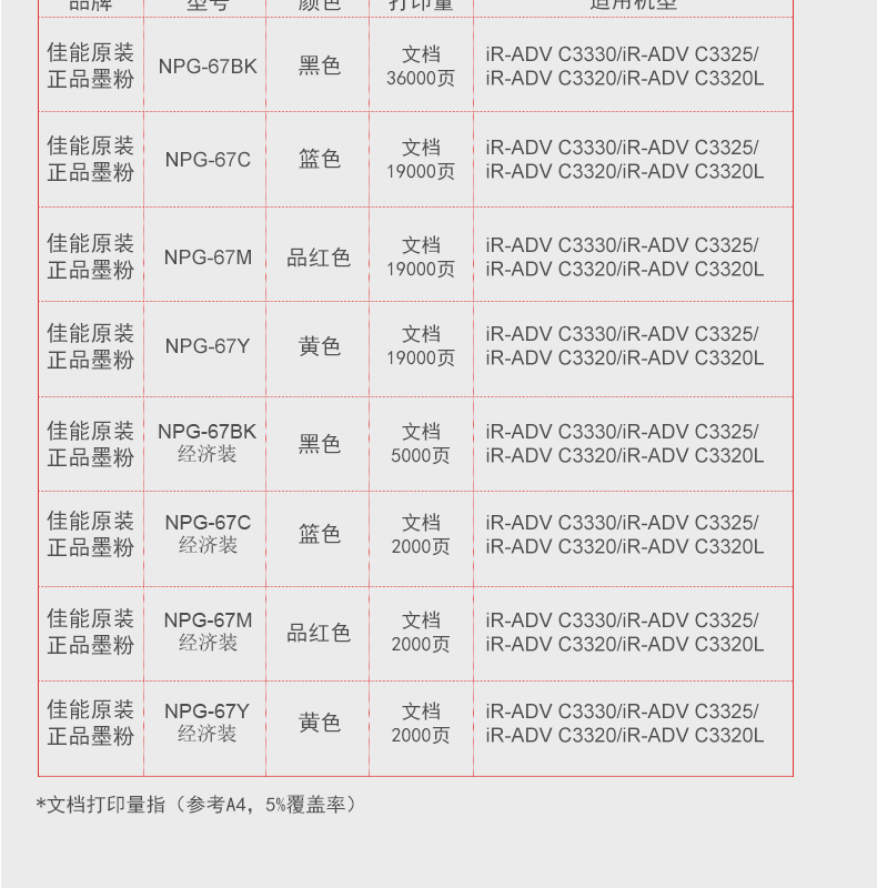 佳能墨粉 NPG-67 紅色墨粉 適用:C3020/C3320/C3520/C3525 單位:支