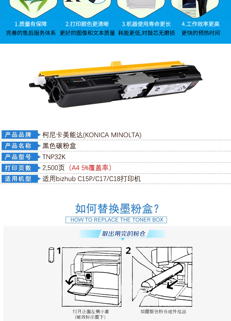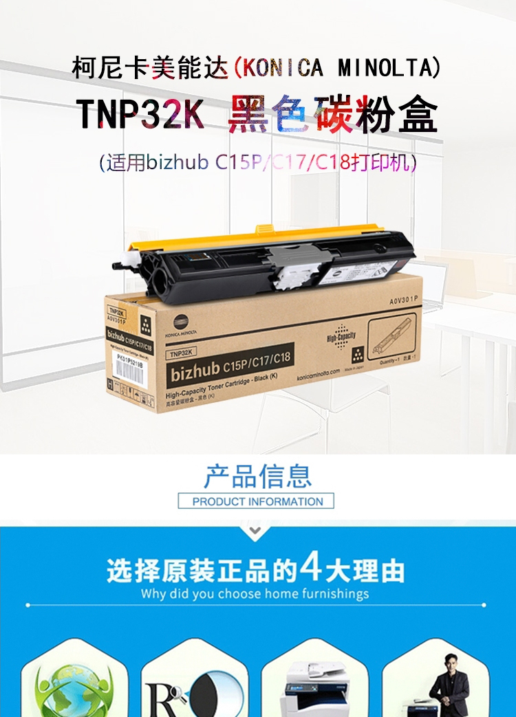 柯尼卡美能達(dá) TNP32 黑色碳粉 適用bizhub C15P/C17/C18打印機(jī) 單位:支