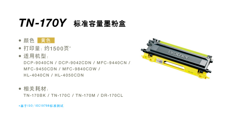 兄弟墨粉 TN-170Y 黃色粉盒 適用:HL-4040CN/4050CDN DCP-9040CN MFC-9440CN/9840CDW 單位:支