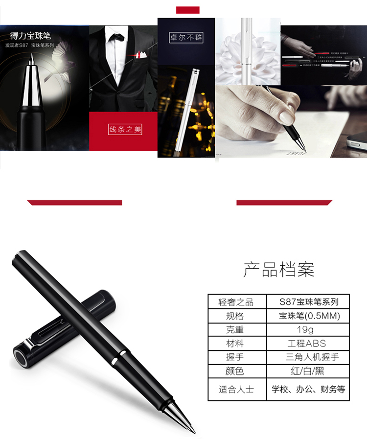 得力鋼筆 S87發(fā)現(xiàn)者系列寶珠筆中性筆 典雅黑 單位:支
