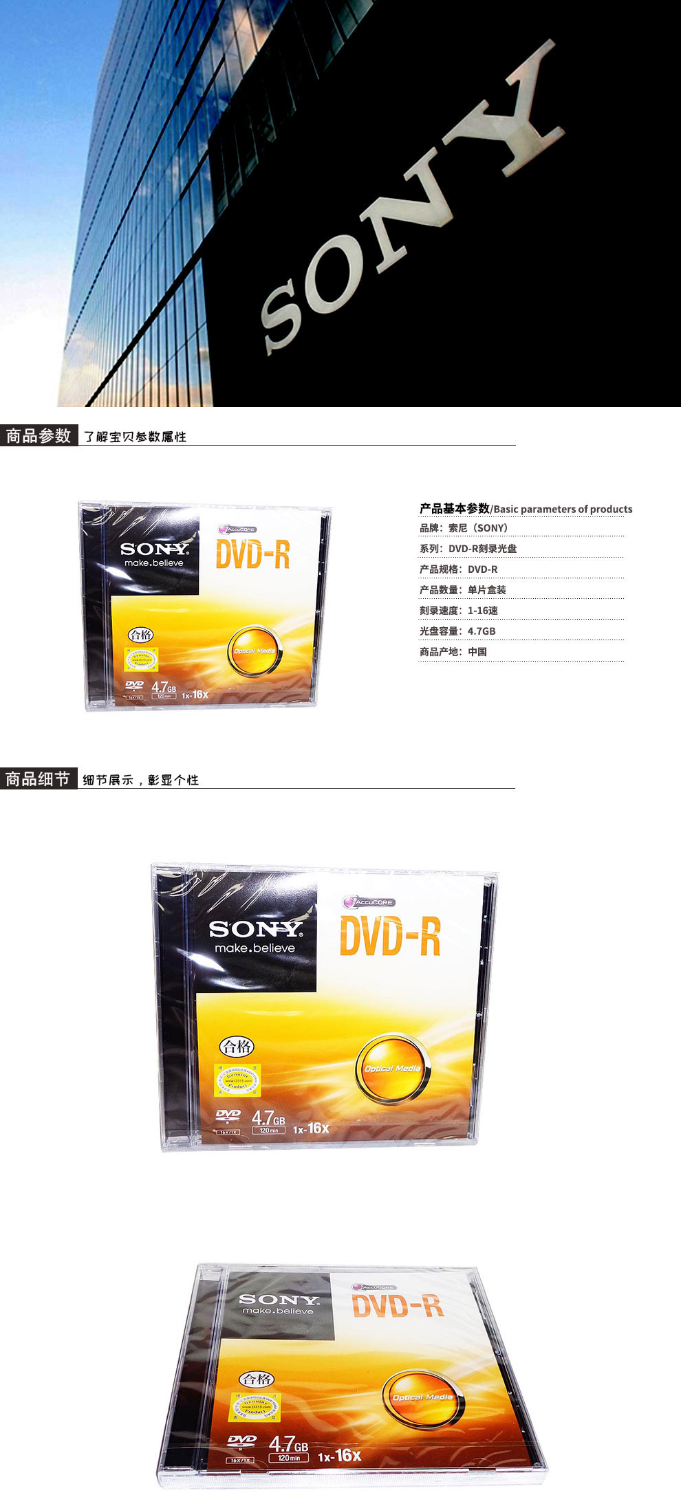 索尼光盤 DVD-R 4.7G dvd刻錄盤 空白光盤 單位:片