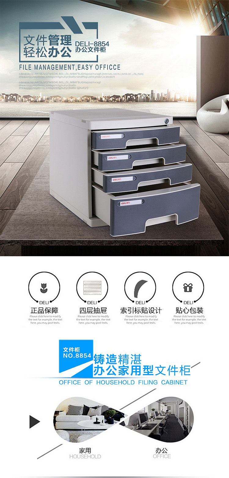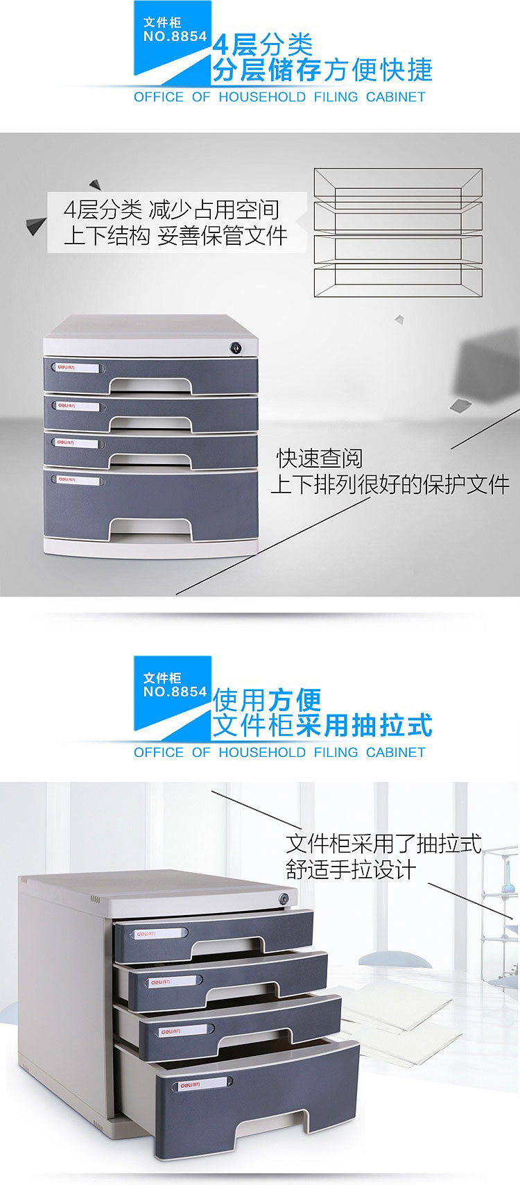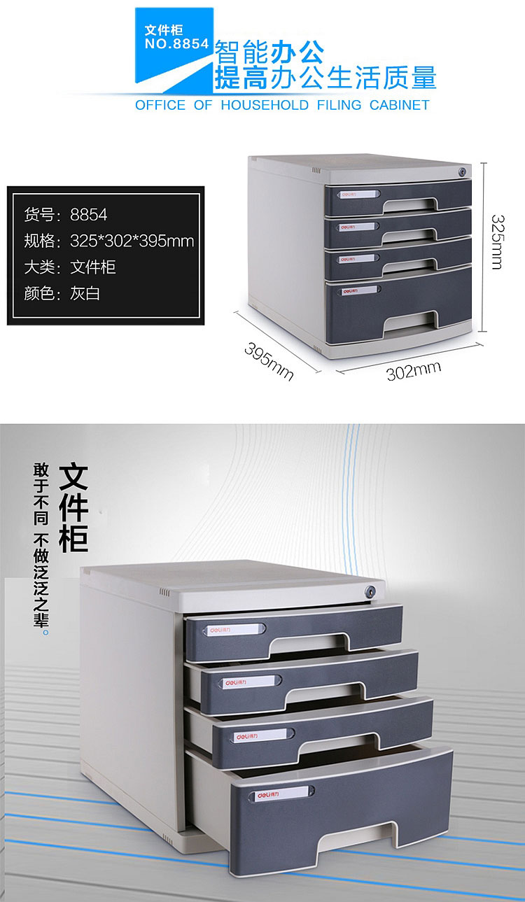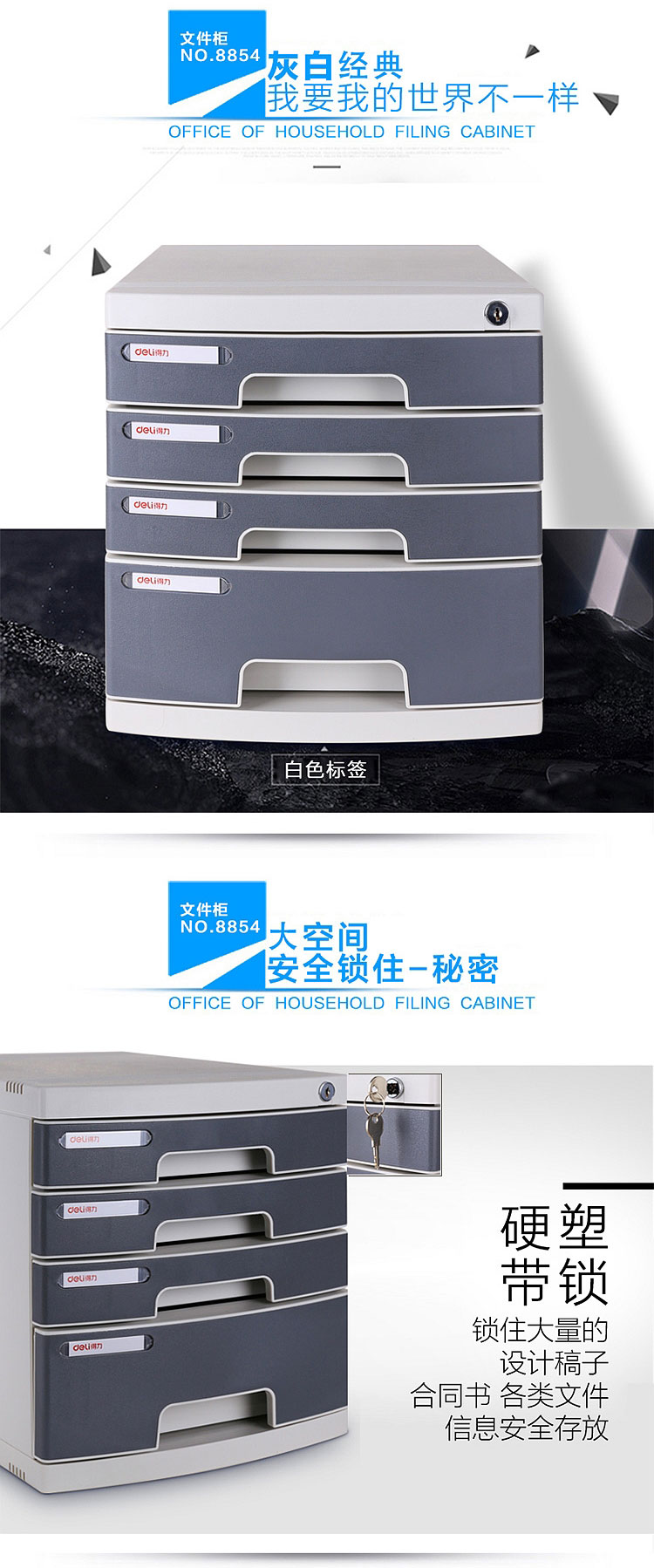 得力文件柜 8854 四層塑料文件柜(帶鎖)灰色 單位:個