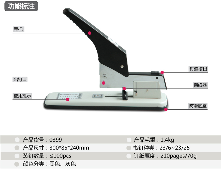得力訂書機(jī) 0399 210頁厚層訂書機(jī) 單位:個(gè)