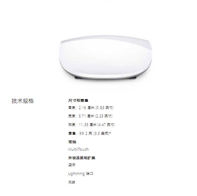 蘋(píng)果無(wú)線(xiàn)鼠標(biāo)第二代 Magic Mouse 2 單位:個(gè)