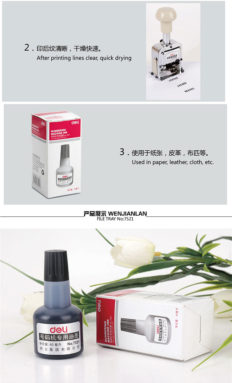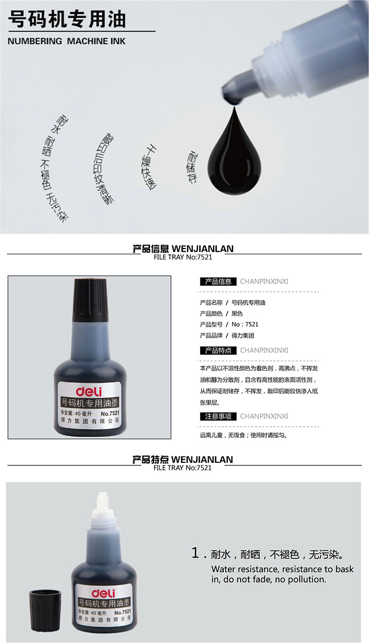 得力 7521 自動(dòng)號(hào)碼機(jī)專用油墨 40ml(黑) 單位:個(gè)