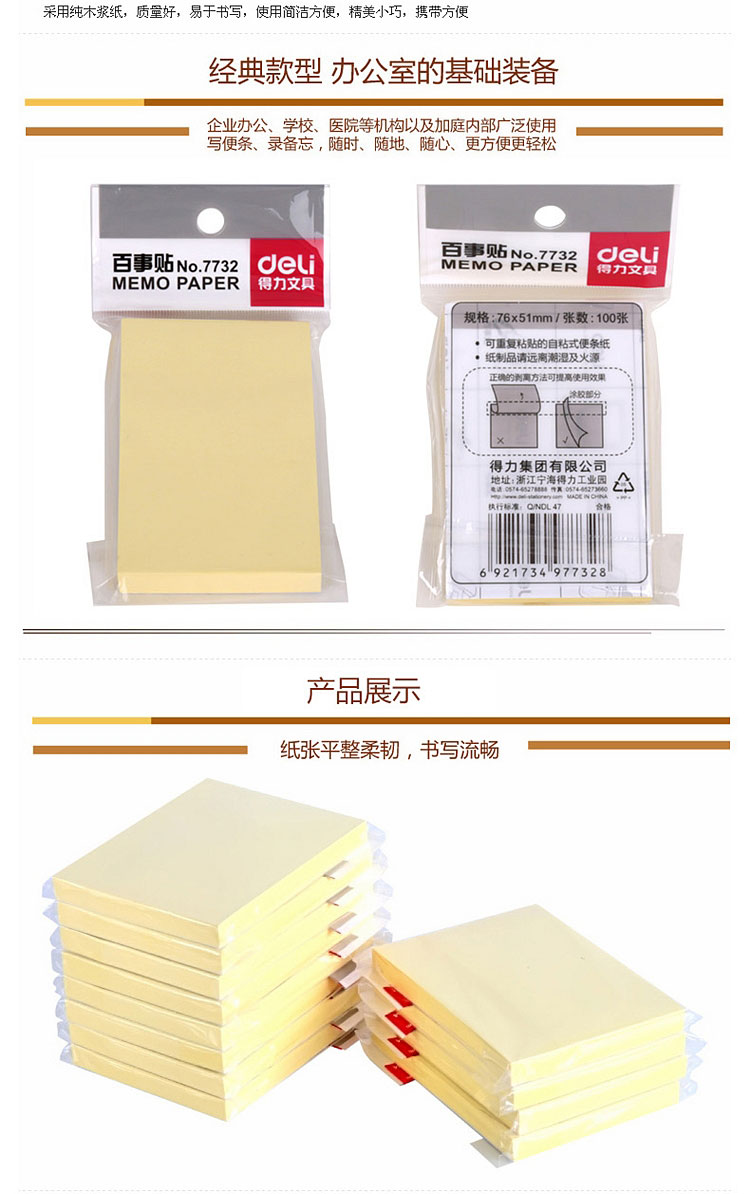 得力便簽紙 7732 創(chuàng)意便利貼便簽紙本 單位:包