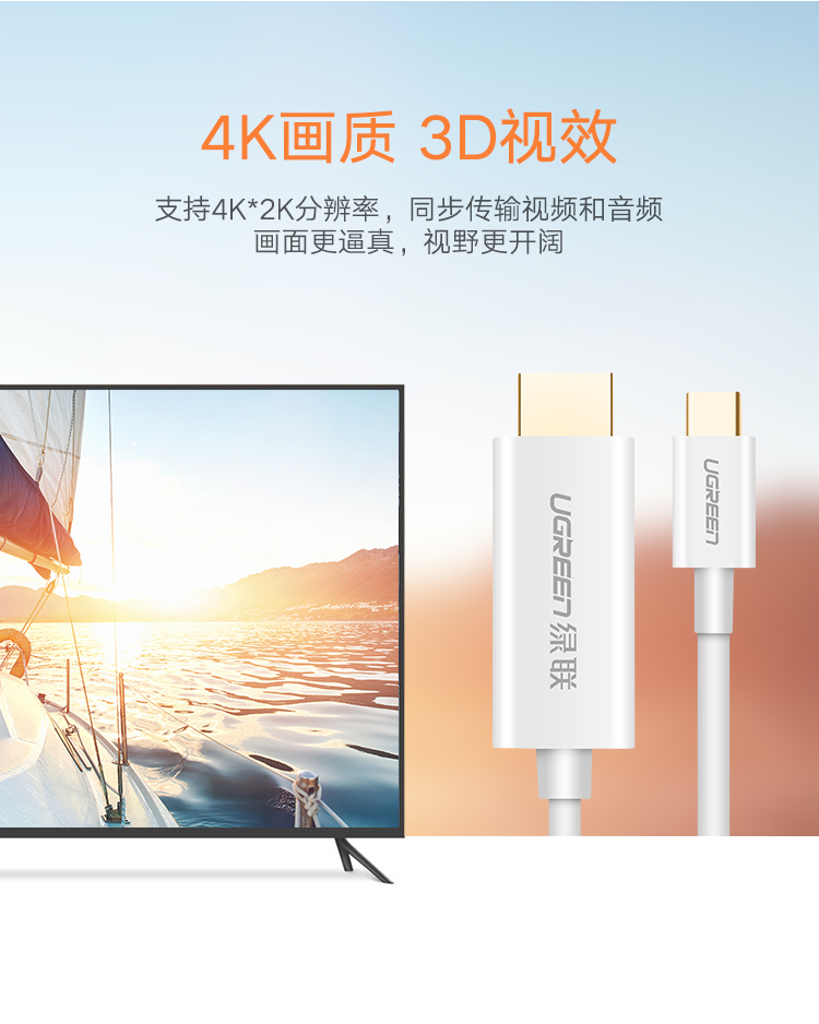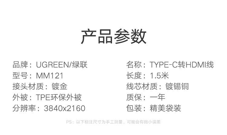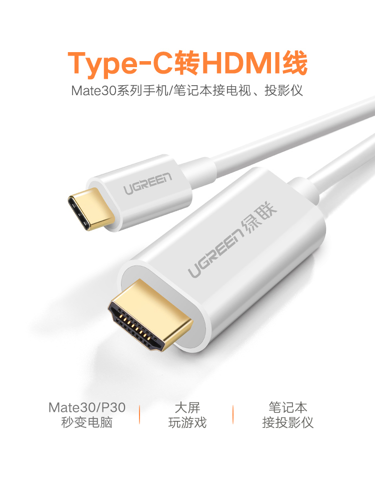 綠聯(lián) MM121 擴(kuò)展塢 適用蘋果華為設(shè)備 USB-C轉(zhuǎn)HDMI 高清4K視頻傳輸 白色 單個裝