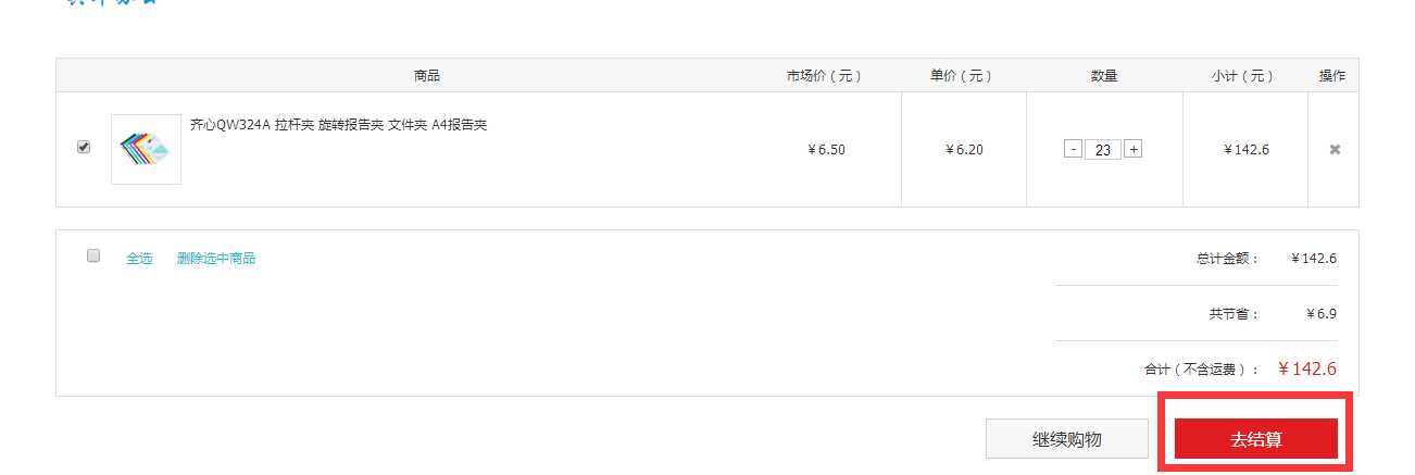 3.選好商品后點擊“去結(jié)算”;(如下圖)