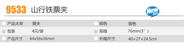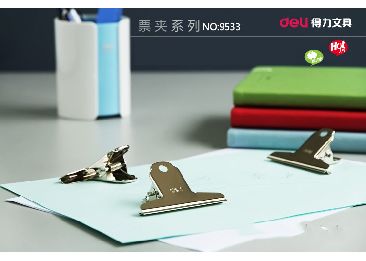 得力(deli)9533 76mm山形鐵票夾 4只/袋