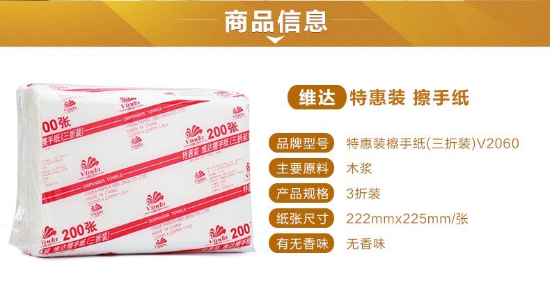 維達(dá)抽紙 V2060三折擦手紙?zhí)鼗菅b公 單位:20包/箱