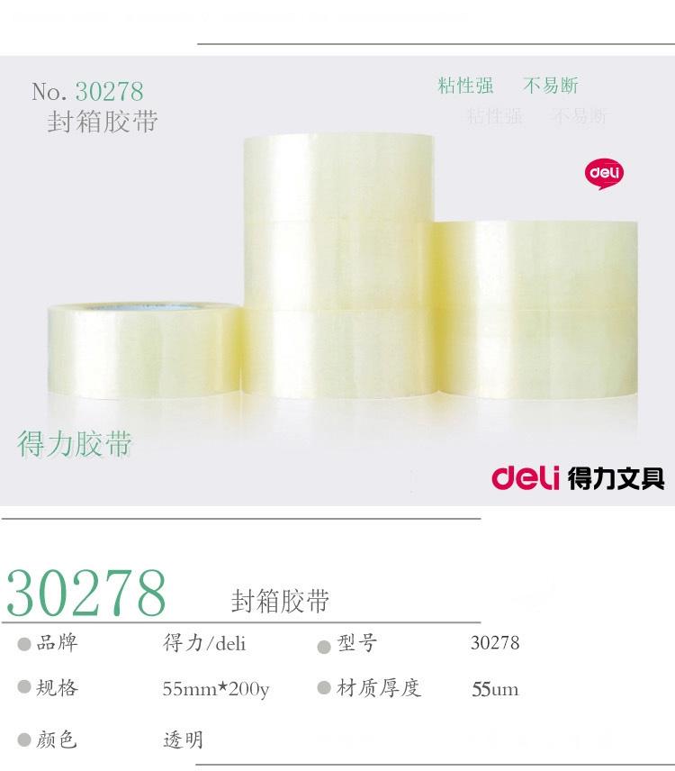 得力膠帶 30278 透明封箱帶透明膠帶 單卷 55mm*200y 單位:卷