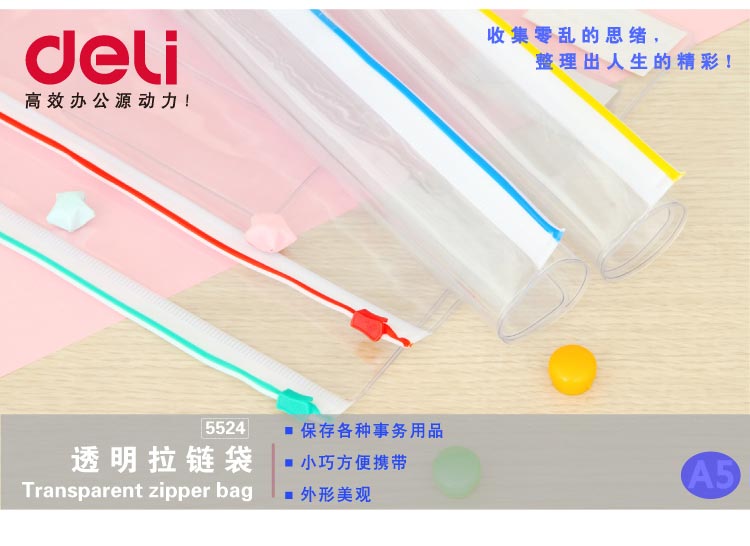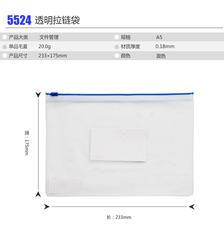 得力拉鏈袋 5524 A5透明防水拉鏈袋 單位:12個(gè)/包