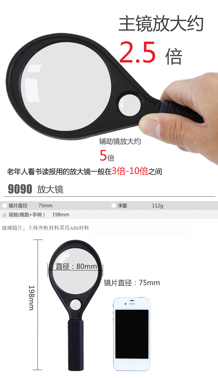 得力放大鏡 9090 帶輔助放大鏡 Ф75mm 單位:個(gè)