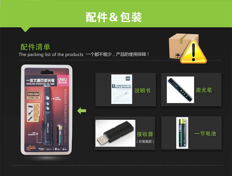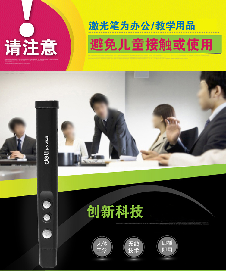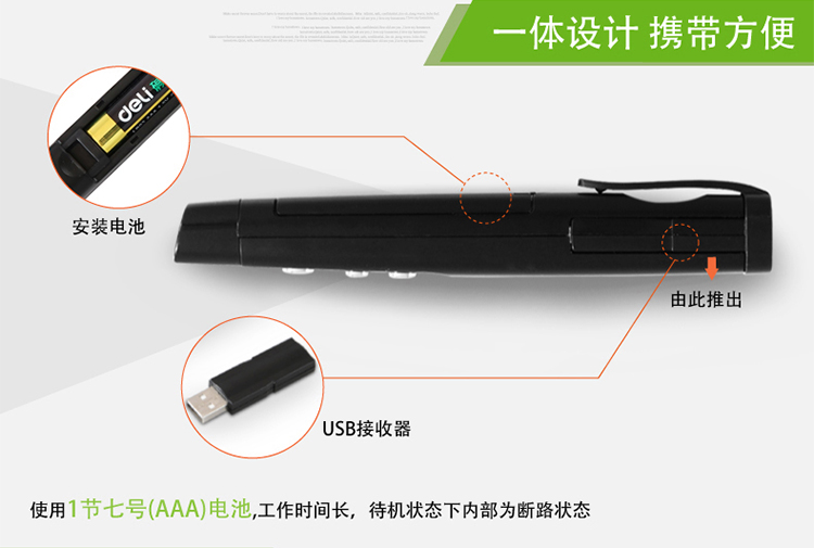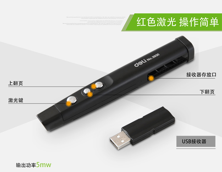 得力激光筆 3930 一體式翻頁激光筆 會(huì)議ppt播放 黑色 單位:支