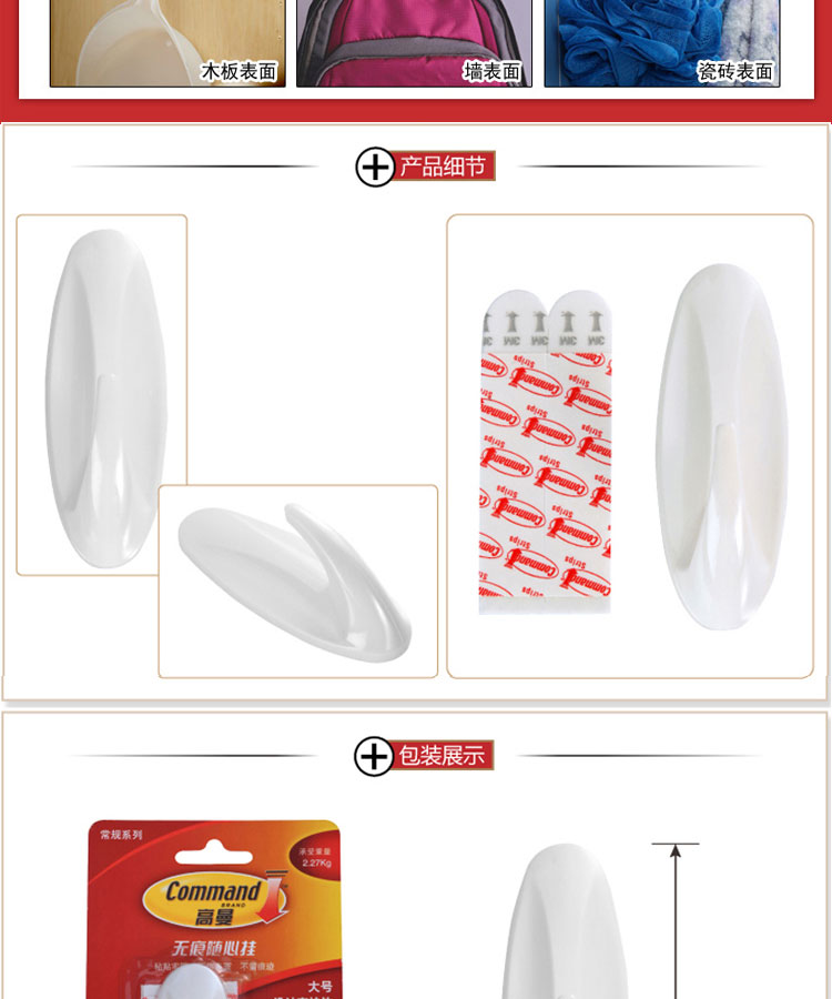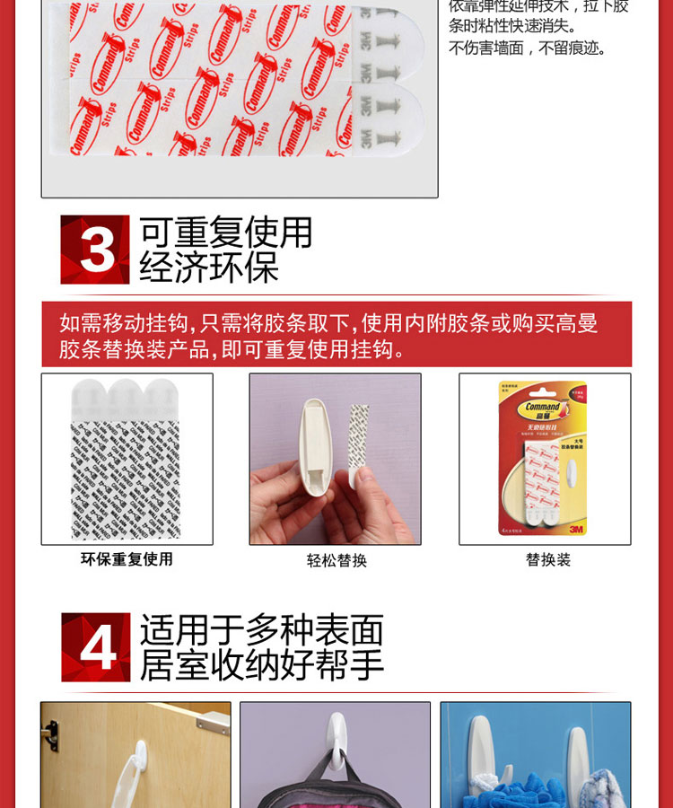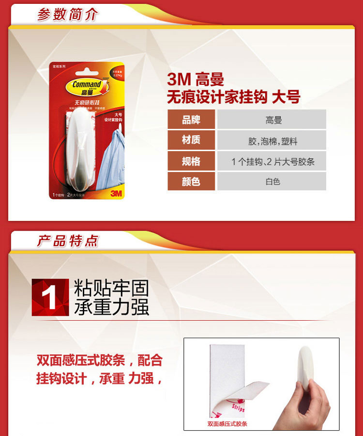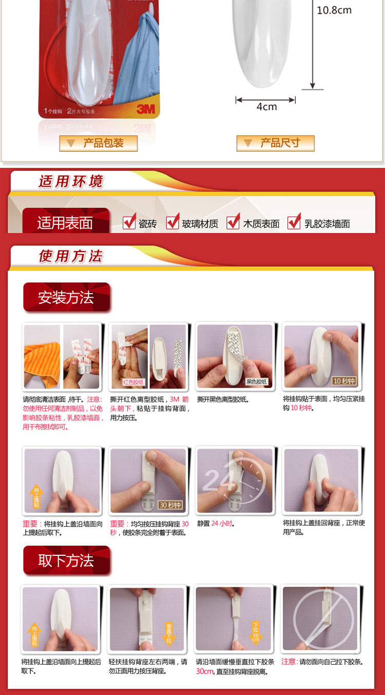 3M無痕粘鉤掛鉤 大號(hào) 輕松取不留痕 單位:卡