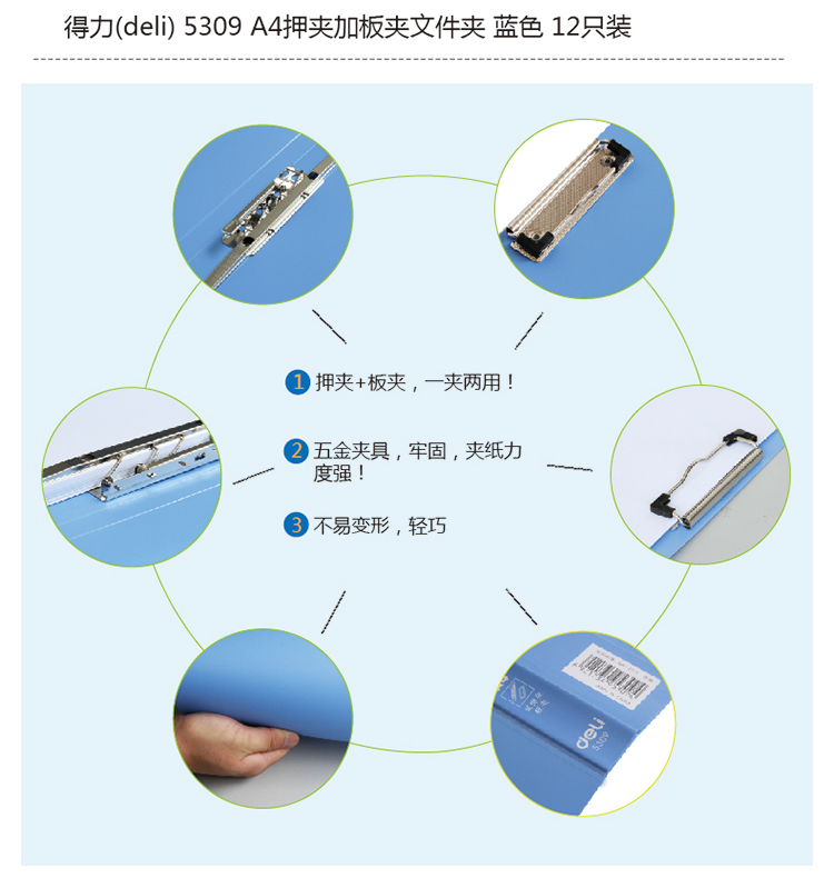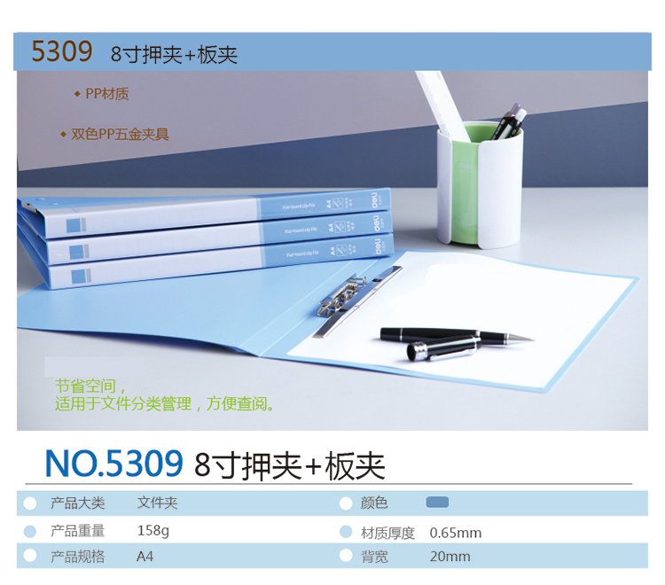 得力(deli) 5309 A4長(zhǎng)押夾加板夾文件夾 藍(lán)色