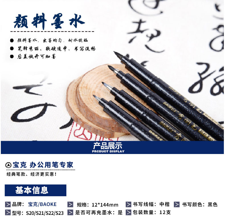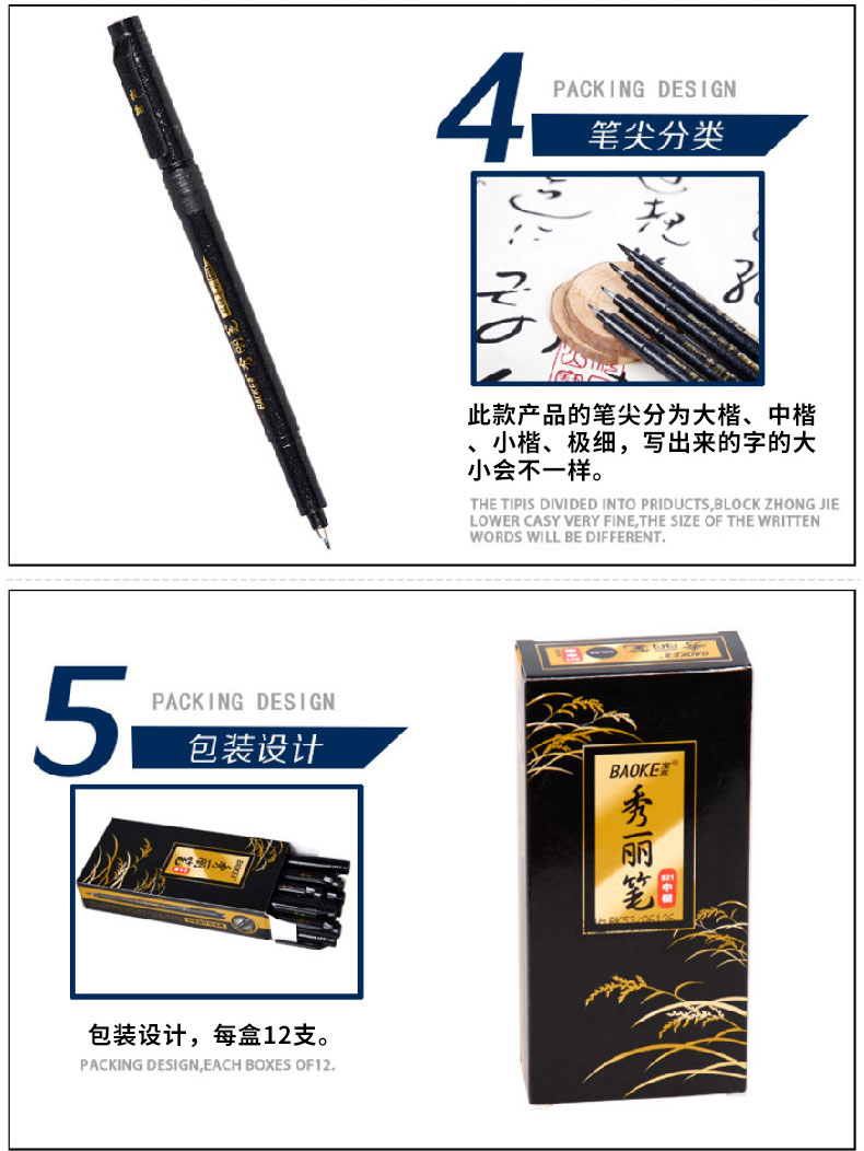 寶克書法筆 秀麗筆 S3小楷 12支/盒 黑色 單位:盒
