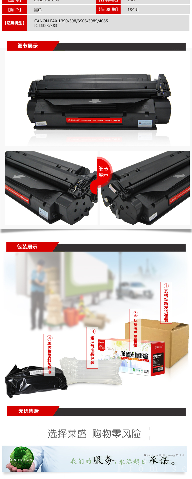 萊盛光標(biāo) LSGB-CAN-W 黑色硒鼓 適用:CANON FAX-L390/398/390S/398S/408S IC D323/383 單位:支