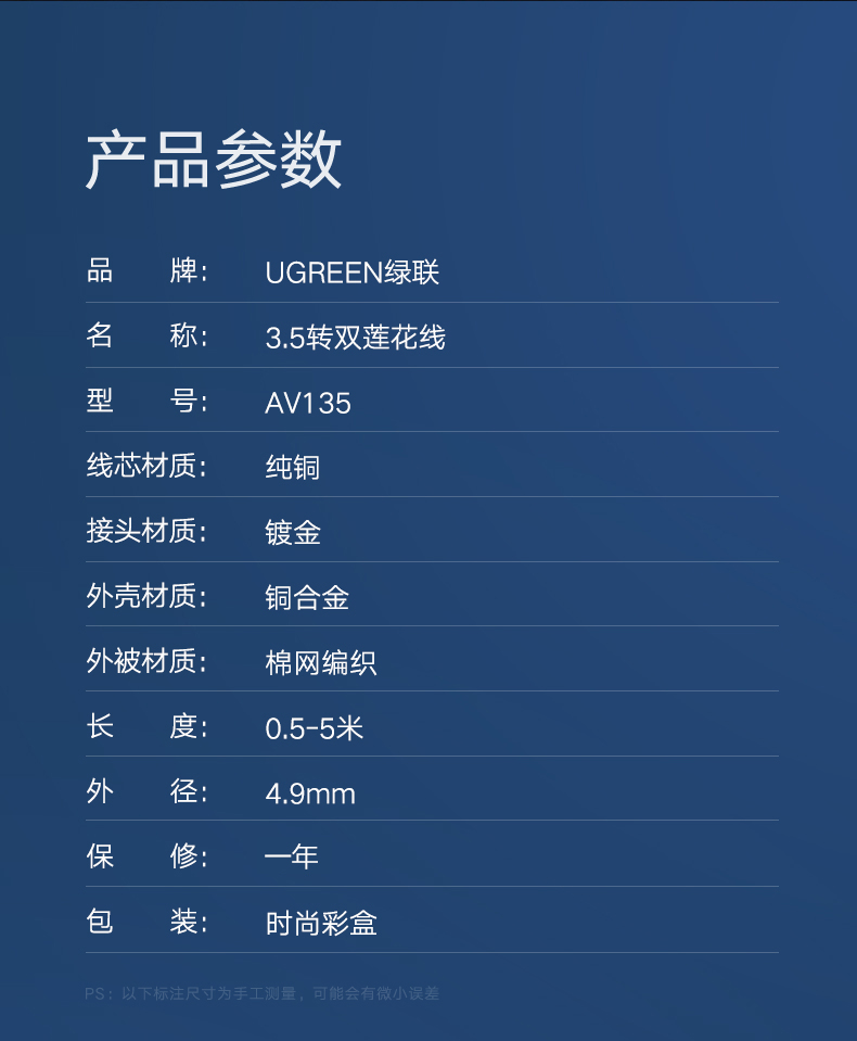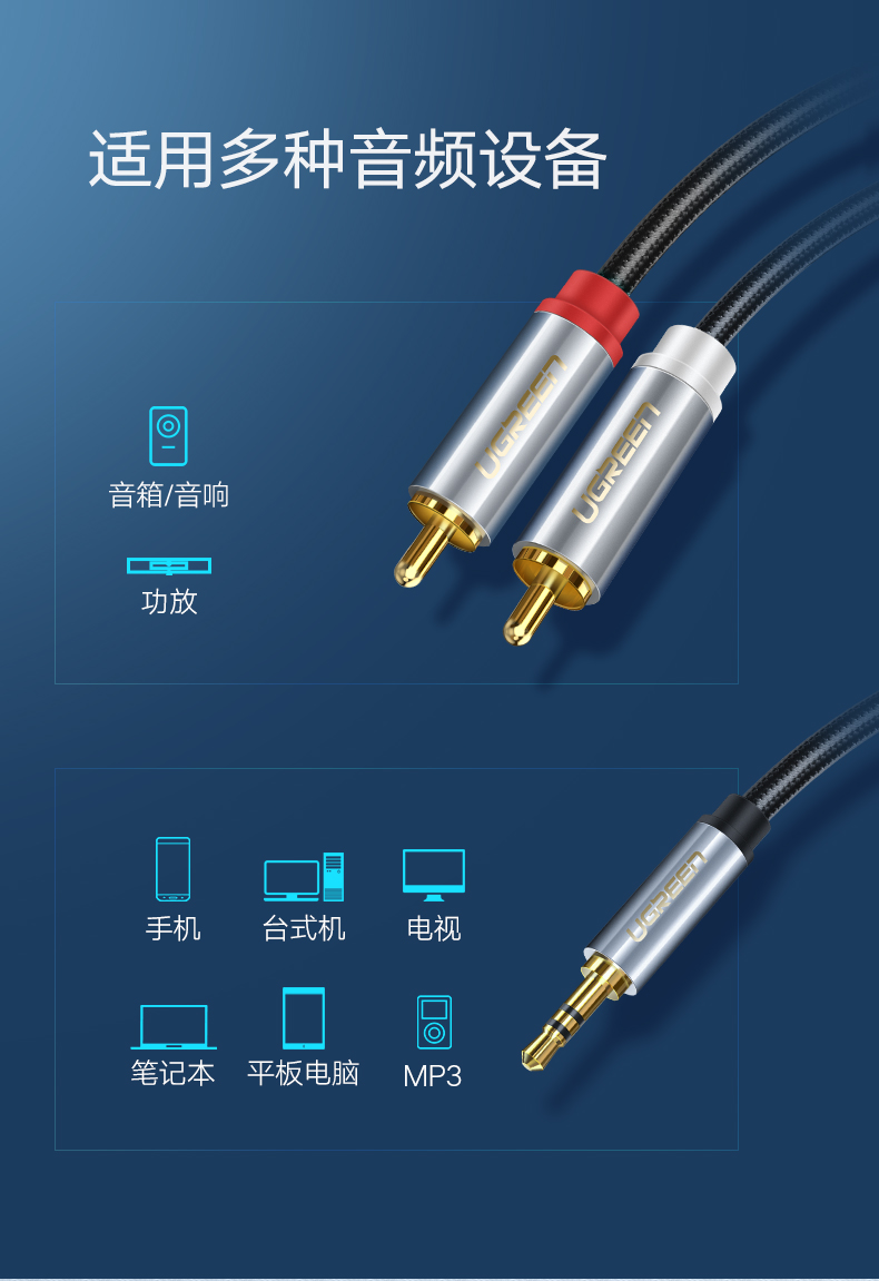 綠聯(lián) AV135 3.5mm公轉(zhuǎn)2RCA公音頻線手機(jī)電腦電視音響箱轉(zhuǎn)換線 棉網(wǎng)款 1.5米 黑色 單位:根