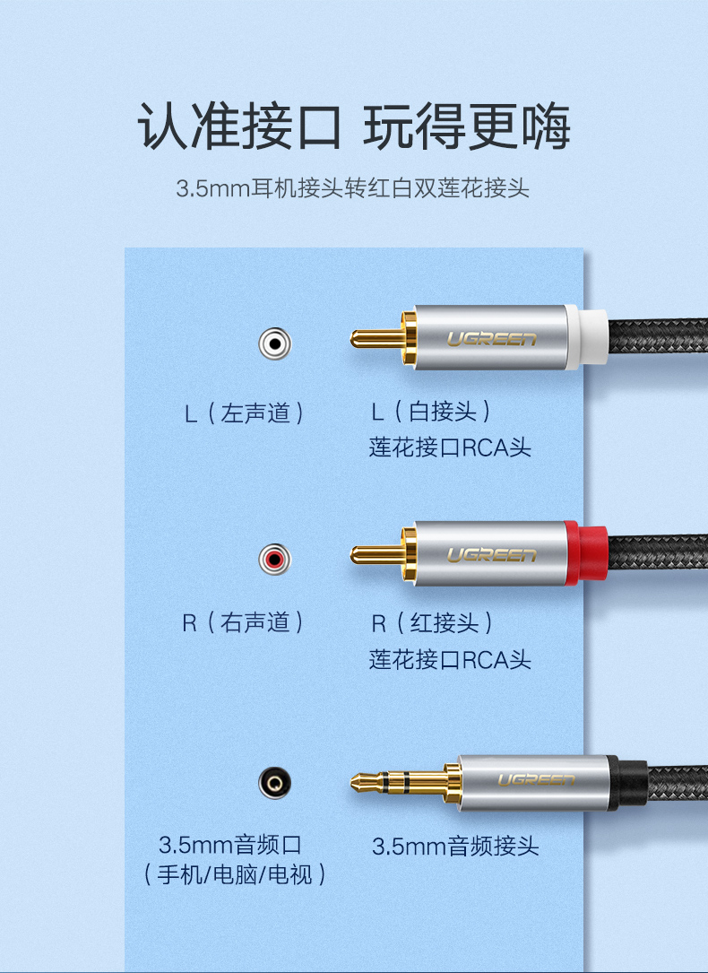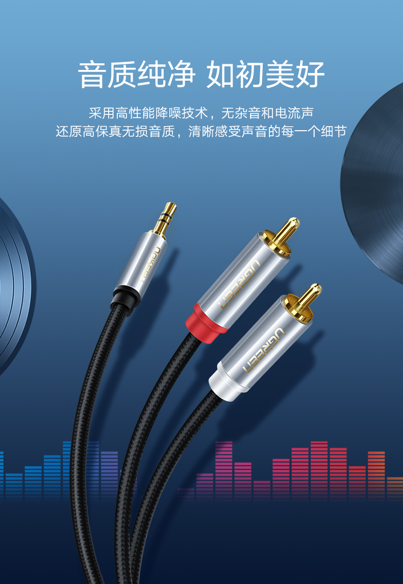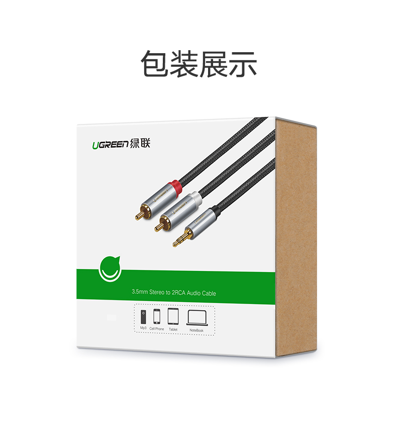 綠聯(lián) AV135 3.5mm公轉(zhuǎn)2RCA公音頻線手機電腦電視音響箱轉(zhuǎn)換線 棉網(wǎng)款 5米 黑色 單位:根