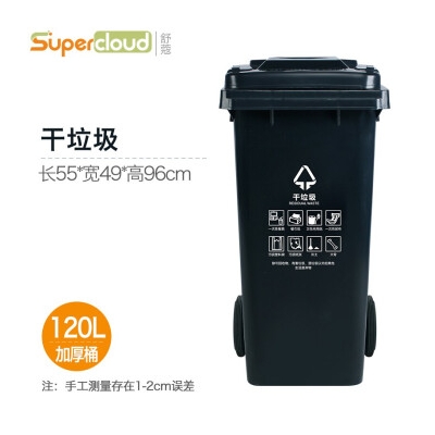舒蔻 120L帶輪 黑色 干垃圾桶 物業(yè)環(huán)衛(wèi)垃圾分類(lèi)商用帶蓋分類(lèi)垃圾桶果皮箱 單個(gè)裝
