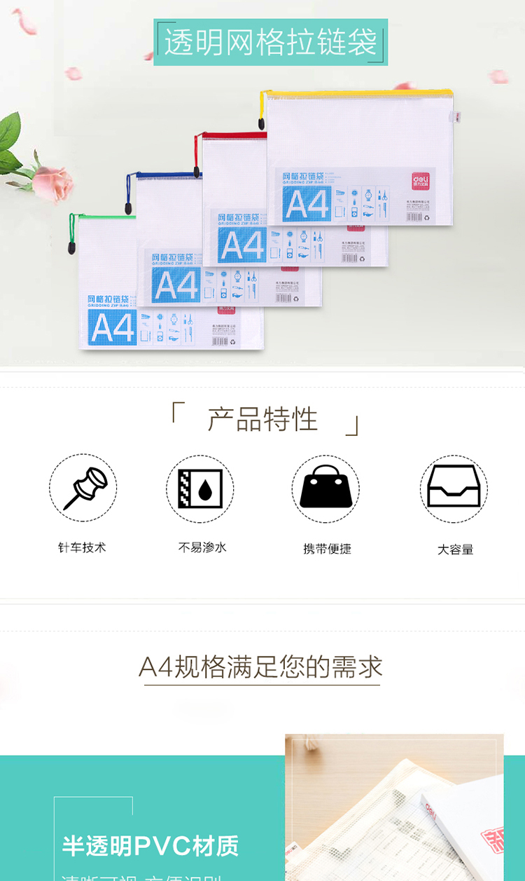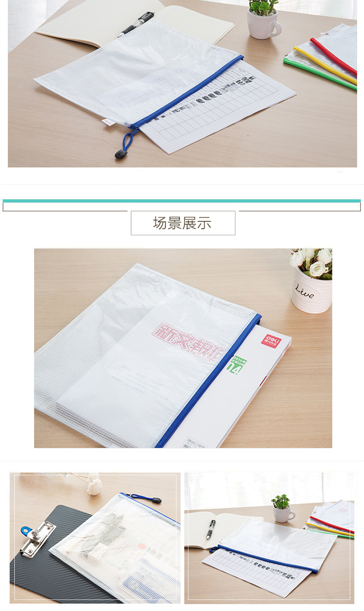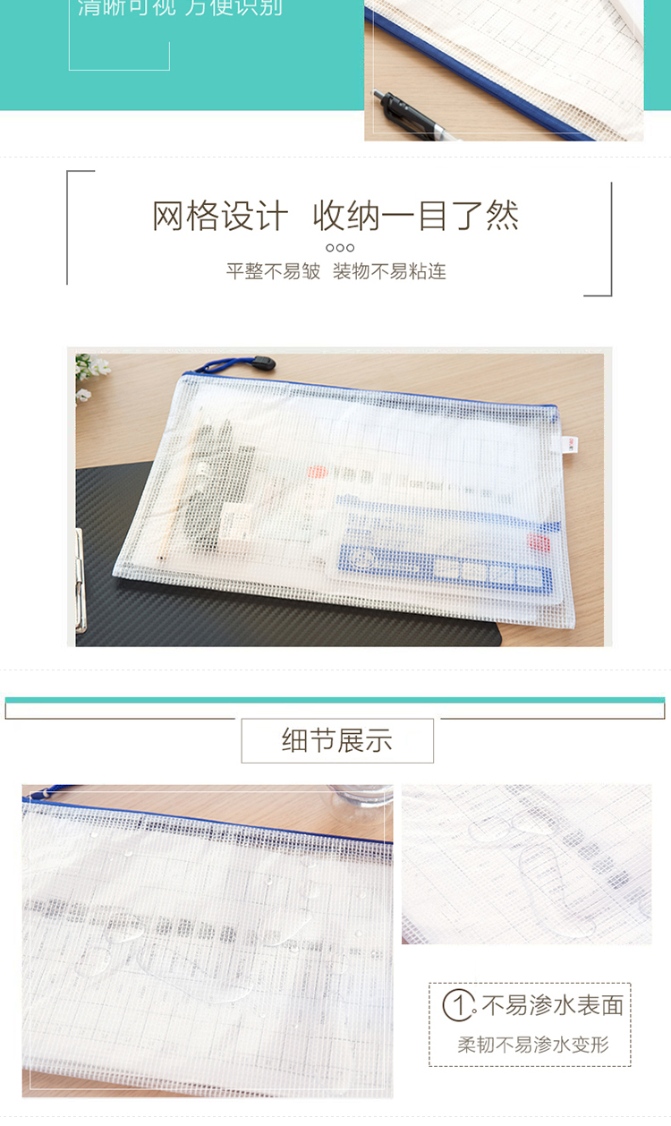 得力拉鏈袋 5654 A4透明網(wǎng)格拉鏈袋 單位:個(gè)