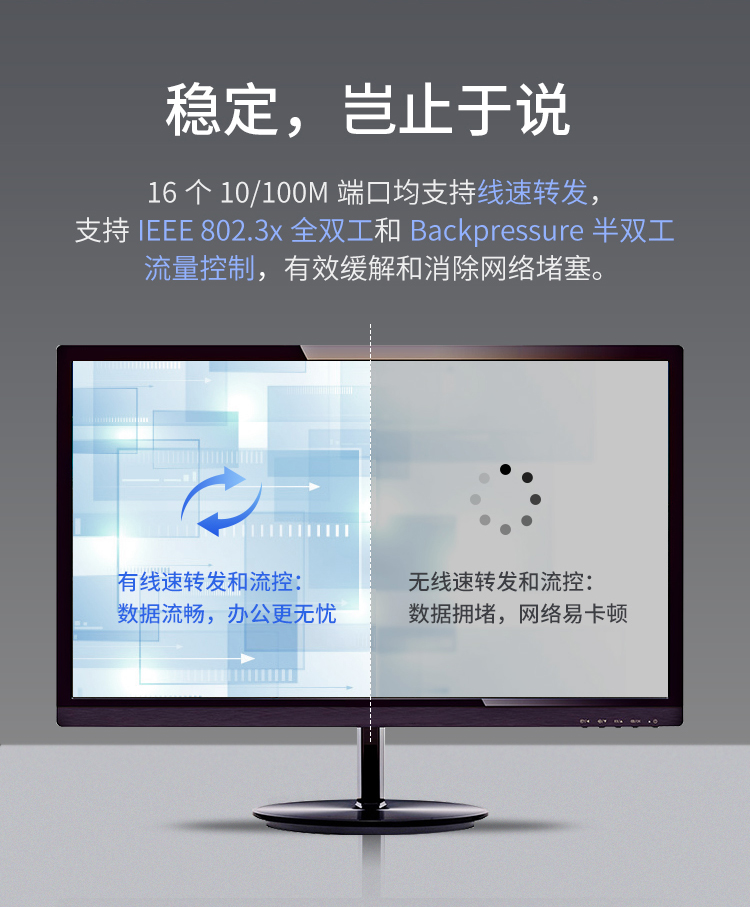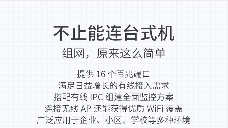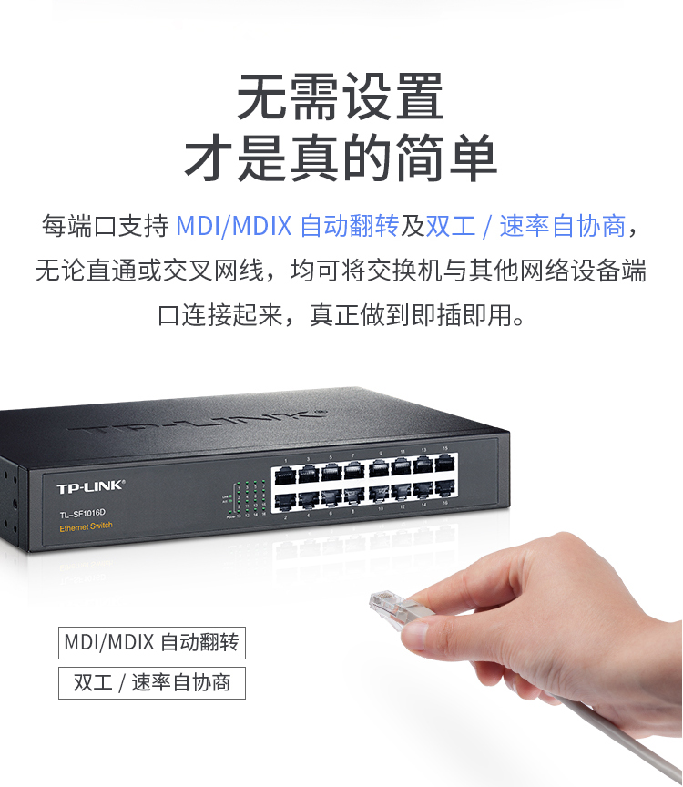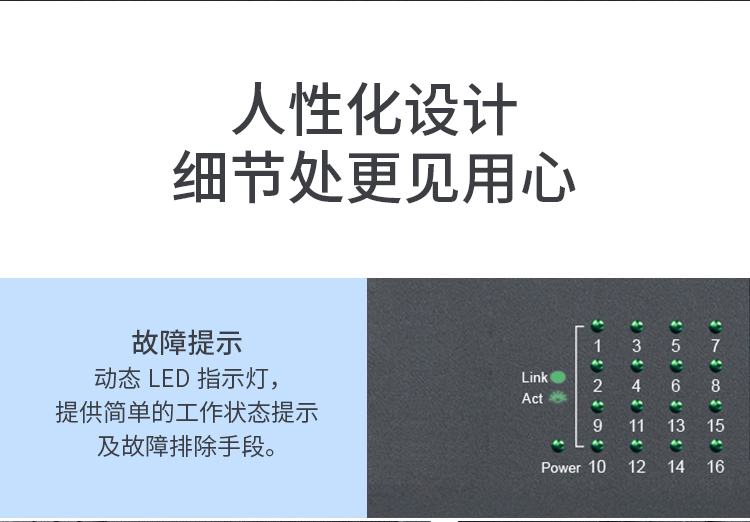 16個(gè)百兆端口,桌面型殼體,即插即用!
