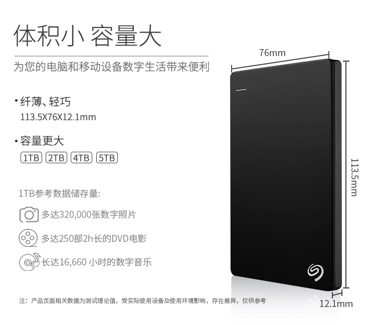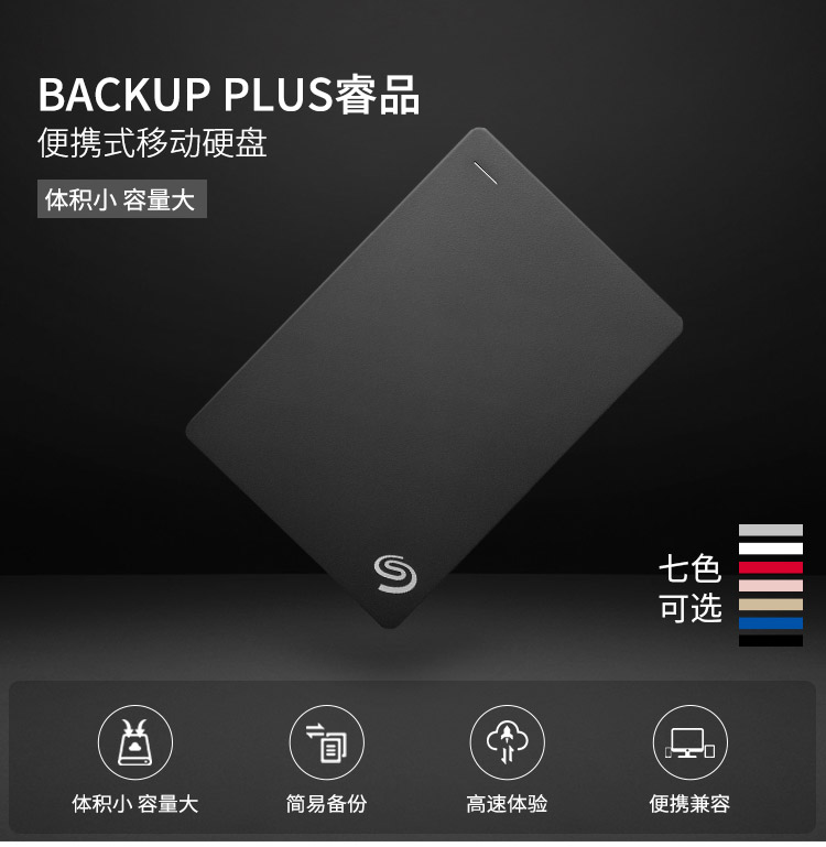 希捷移動硬盤 睿品Backup Plus 2TB USB3.0 2.5英寸 金屬隕石黑(STDR2000300) 單位:塊