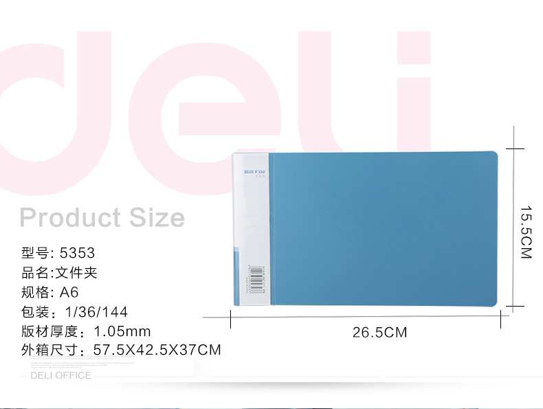 得力票據(jù)夾 5353 發(fā)票夾小號文件夾 264*155*18mm 單位:個(gè)