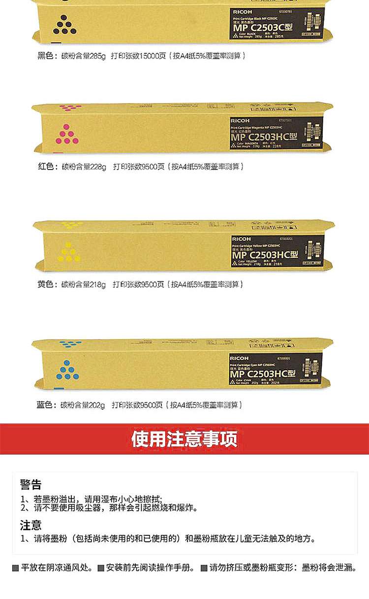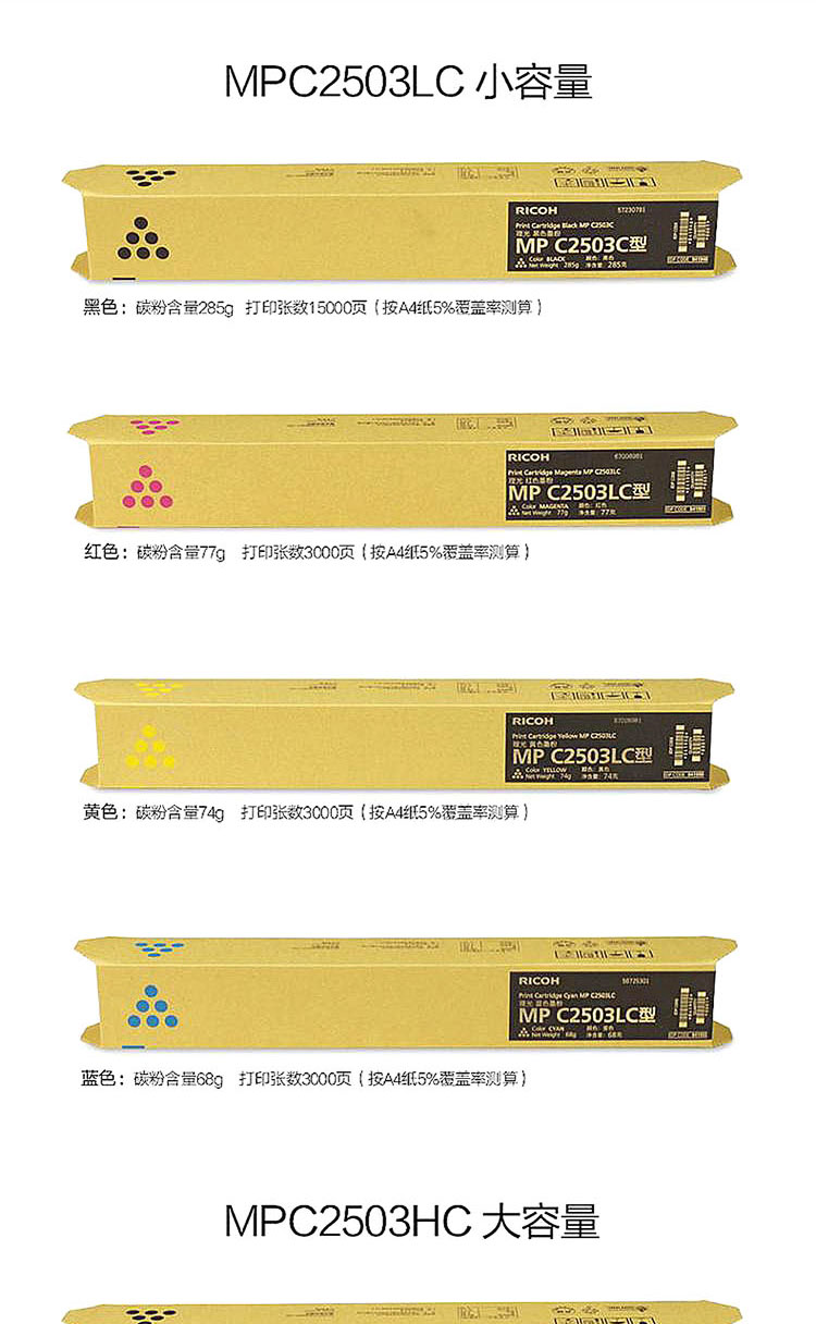 理光墨粉 MPC2503HC 黃色 適用MP C2003SP/C2503SP/C2011SP/C2004SP/C2504SP 單位:支