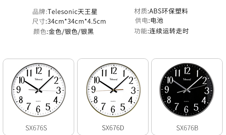 天王星 鐘表現(xiàn)代簡(jiǎn)約靜音鐘創(chuàng)意時(shí)尚時(shí)鐘石英鐘 Q0676-2 銀色 單位:個(gè)